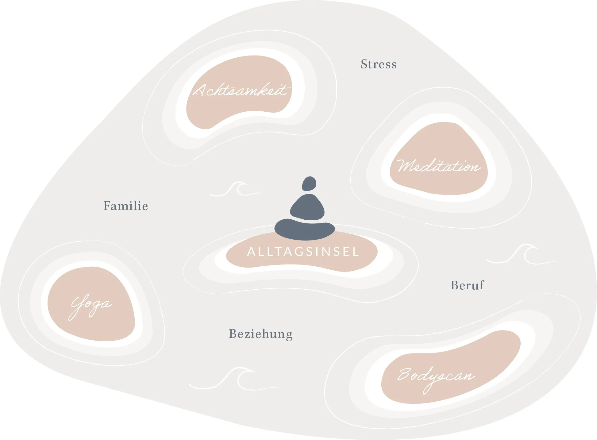 Alltagsinseln schaffen einen Raum für die Begegnung mit sich selbst und dem gegenwärtigen Moment, so wie er gerade ist. Wer dieses offene Gewahrsein regelmäßig praktiziert, der wird feststellen, dass sich mit der Zeit das ganze Leben auf die heilsame Begegnung mit dem „Hier & Jetzt“ ausrichtet.